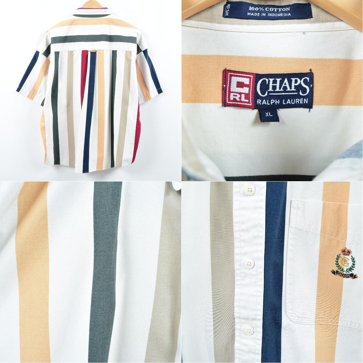 ・Ralph Lauren CHAPS チャップス 半袖 ボタンダウンストライプシャツ / メンズXL / 商品番号 eaa037179△シャツの裾をカットし、ボックスシルエットにリメイクしています。