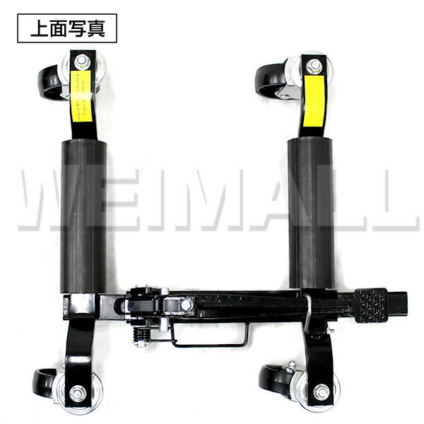 2台で耐荷重1120kg!! 狭い場所で自動車を移動させる時や動かくなってしまった自動車を移動させるときなど、前輪や後輪にセットして自由に移動できます! 移動時のハンドル操作も不要! 使い方は簡単! タイヤに合わせてセットし、ペダルを踏むだけで軽々と車両を持ち上げられます。
